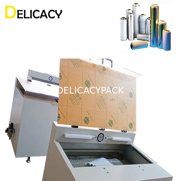 Το αερόλυμά μας να διαρρεύσει τον ελεγκτή είναι μια συσκευή που χρησιμοποιείται μπορεί για να εξετάσει για τη διαρροή στα δοχεία αερολύματος. Αποτελείται χαρακτηριστικά από τα πολλαπλάσια κεφάλια δοκιμής που χρησιμοποιούνται για να εξετάσουν τα διαφορετικά μέρη του αερολύματος μπορεί για τη διαρροή. Ο εξοπλισμός δοκιμής χρησιμοποιεί χαρακτηριστικά το νερό ή άλλα υγρά για να διευθύνει τη δοκιμή για να ανιχνεύσει οποιεσδήποτε διαρροές ή άλλες ατέλειες στο αερόλυμα μπορούν.