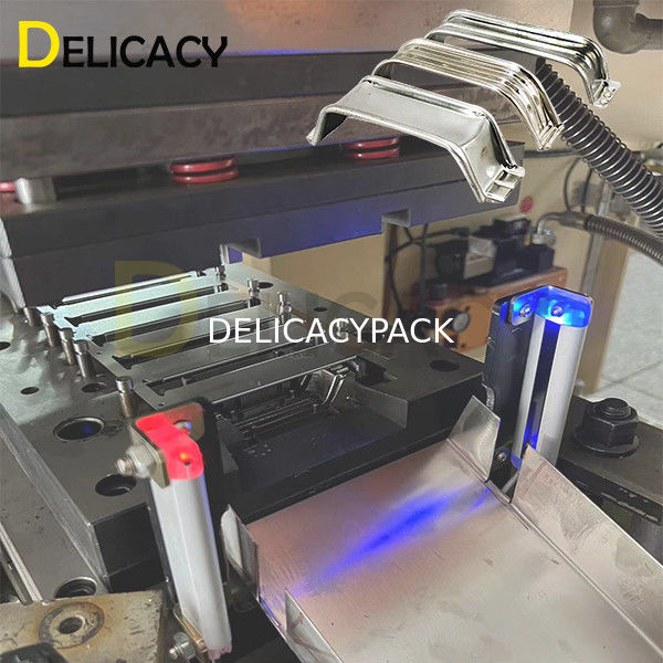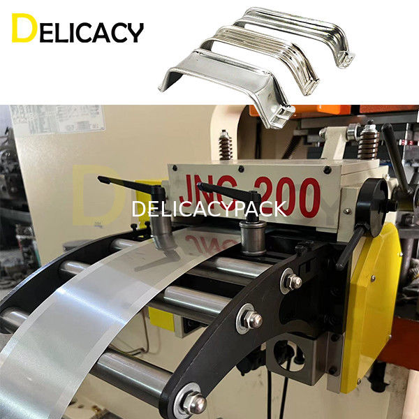 Η διαδικασία συνήθως ξεκινά με ένα ρολό πρώτης ύλης, το οποίο τροφοδοτείται σε μια μηχανή που σχηματίζει το υλικό σε σχήμα λαβής.Στη συνέχεια, τα κενά της λαβής κόβονται στο κατάλληλο μέγεθος και μεταφέρονται στο επόμενο μηχάνημα, όπου λυγίζουν και διαμορφώνονται ώστε να ταιριάζουν στην κορυφή ενός ορθογώνιου κουτιού 4 λίτρων.